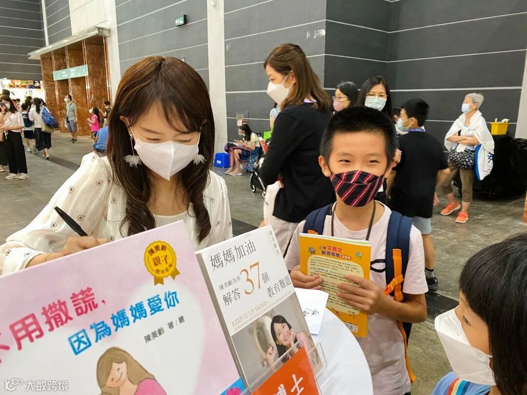 美國史丹福大學教育學博士、暢銷書作家陳美齡在7月22日到新雅文化展位跟讀者見面交流兼簽書合影。