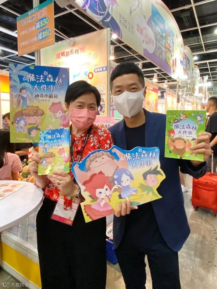 藝人馬浚偉及陳倩揚7月22日現身新雅文化展位支持陳美娟校長的新書《魔法森林大事件2:神奇小蘑菇》。