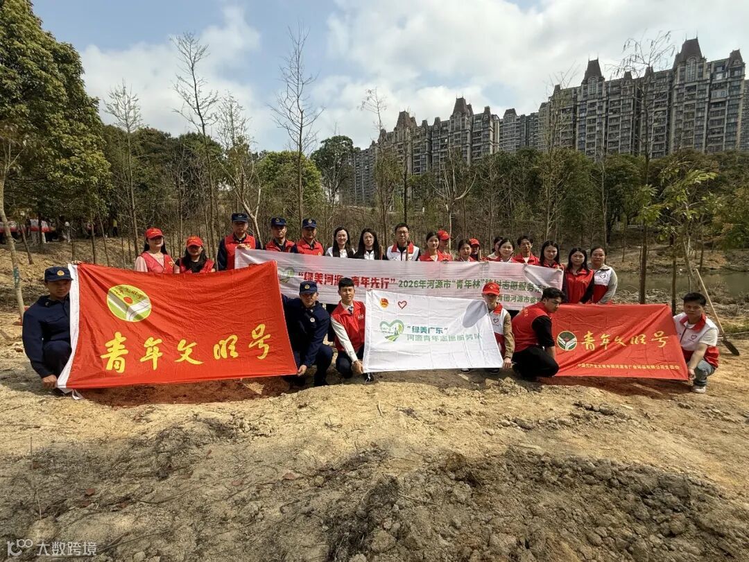 春染大地,绿满槎城。 3月20日,梅河区域中心团支部组织青年文明号成员参与由共青团河源市委员会、河源市林业局等单位联合开展的“绿美河源·青年先行”——2026年河源市“青年林”植树志愿服务活动,与河源市直机关单位等青年文明号的志愿者们一同在源城区客家公园东侧播撒绿色希望,用行动守护河源的绿水青山。