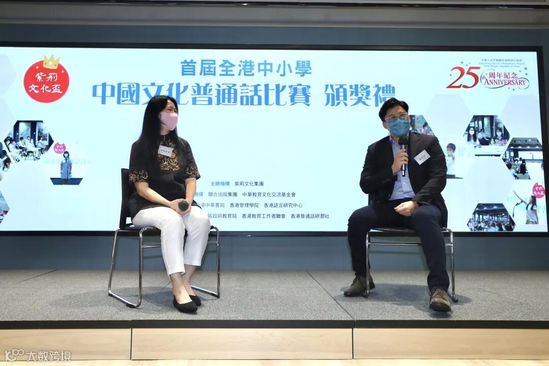 立法會議員霍啟剛先生及福建中學附屬學校校長徐區懿華女士在對談環節以「普通話能力與學生成長」為題,分享到良好的普通話能力有助學生了解國情及升學就業,鼓勵學生趁早培養普通話能力,多聽多說,為未來打好根基。
