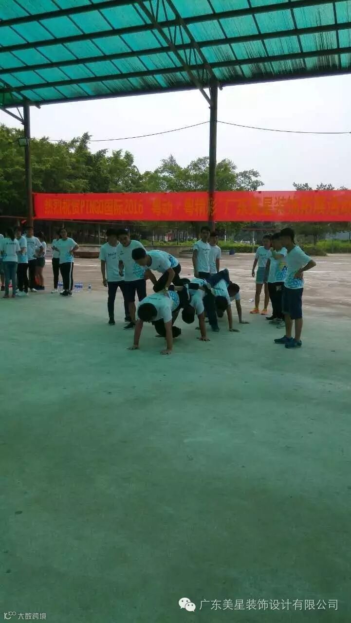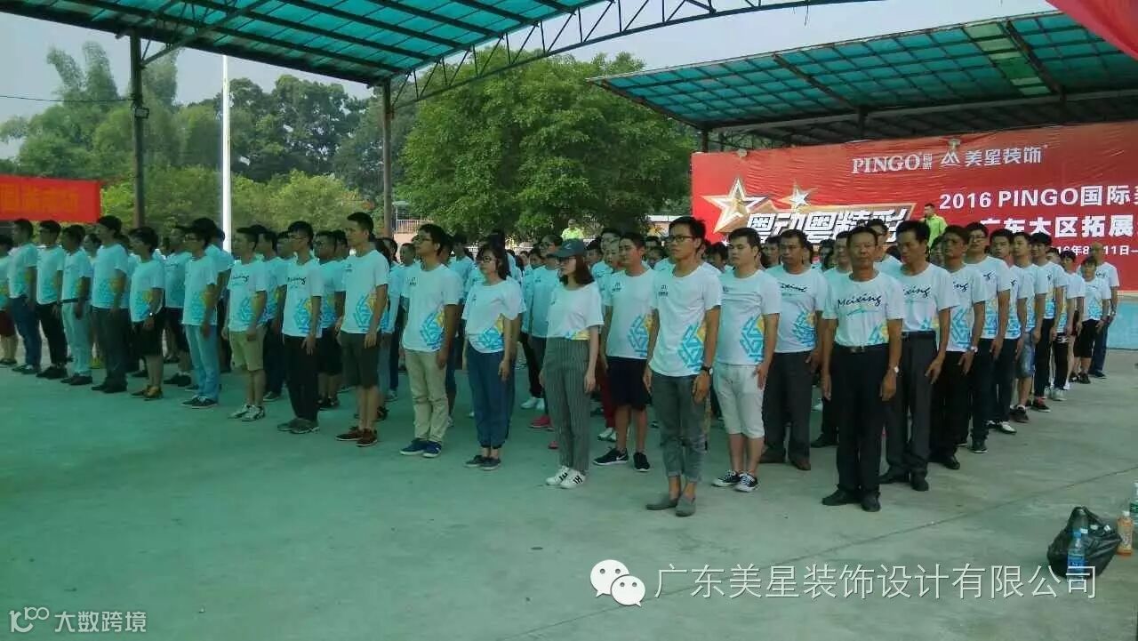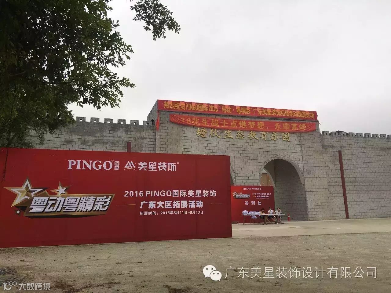 2016年8月11日,PINGO国际2016“粤动.粤精彩”广东美星装饰拓展活动盛大开营,来自美星装饰广东大区:阳江,北滘,乐从,白云,大沥,中山,鹤山,惠阳,塘厦,清远,高州,罗定,汕头,韶关,梅州,江门,兴宁,增城,罗村,丹灶共20家分公司300名家人在佛山高明塘伙训练基地参加为期3天的培训。