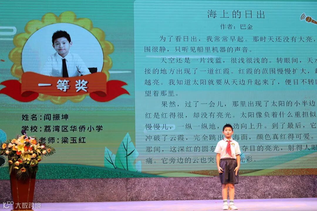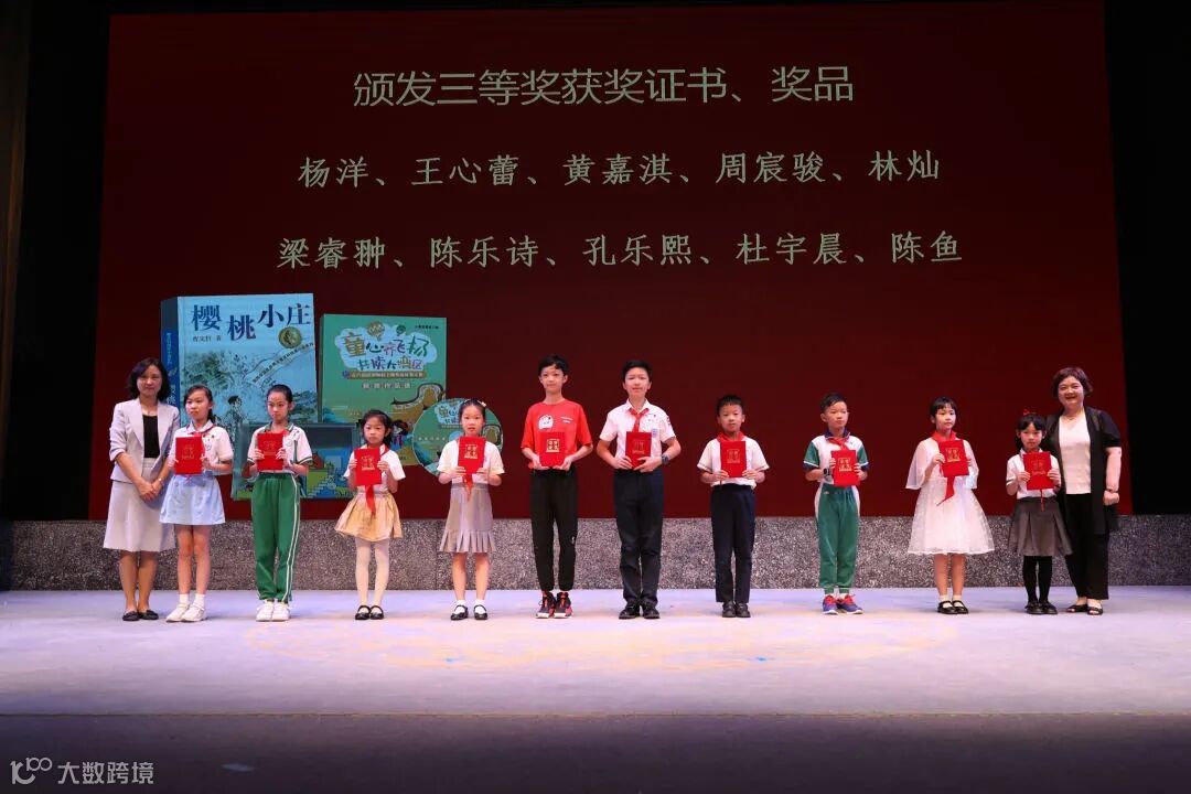 通過層層選拔的38名優勝同學、5個最佳組織學校、10位最佳指導老師、作為優秀合作單位的廣東大音音像出版社及中華商務貿易公司國際圖書中心,在現場均領取了屬於自己的榮譽,到場的領導為獲獎代表進行表彰。
