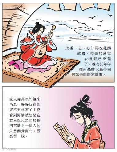明妃初出漢宮時,淚濕春風鬢腳垂。