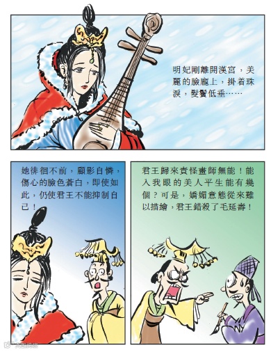 最後「可憐青塚已蕪沒,尚有哀絃留至今」二句是筆鋒再一轉,語帶相關地表達,現實中人才被埋沒的悲劇不斷重演,人間也一直有所感。正如昭君墓陵今已被沙塵埋沒,但昭君琵琶哀絃的餘音,卻一直流傳。