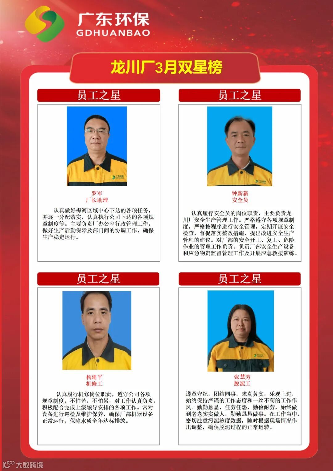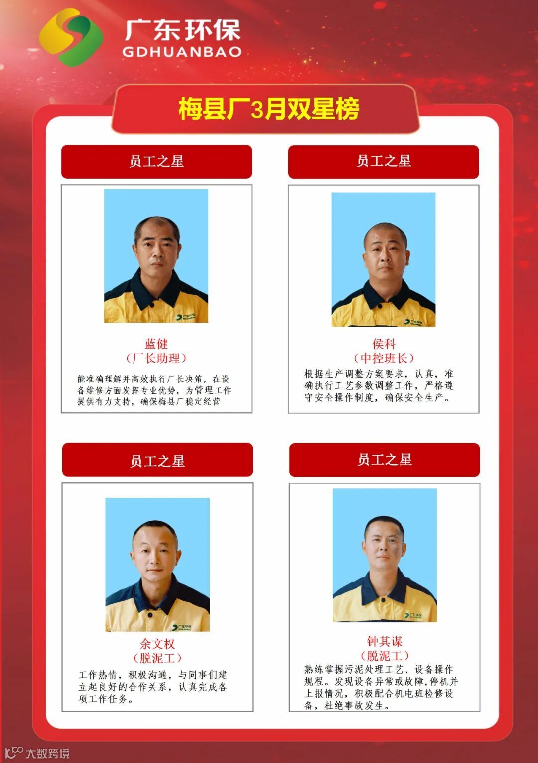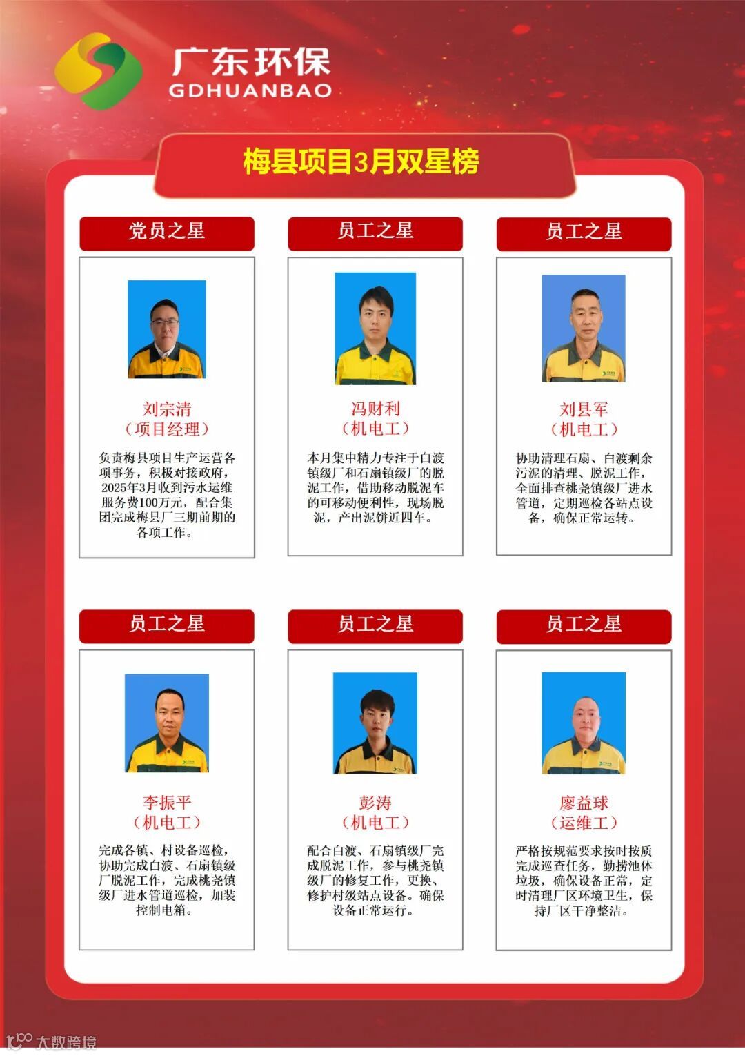 【双星评选】梅河区域中心2025年3月份“双星”评选结果揭晓 广业环保集团梅河区域中心
