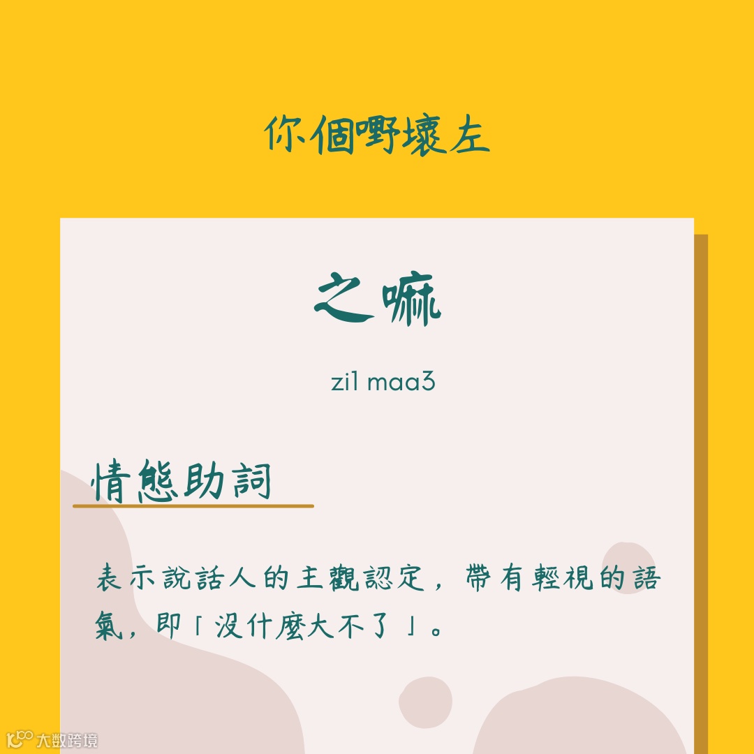 「助詞」是出現在句末位置的虛詞。如果有賓語的話,助詞在賓語之後。助詞主要用於表示事件、時間、語氣等意義。粵語作為一種情感豐富的語言,助詞十分豐富。而在句子與句子之間,即使主體內容用字相同,句末語氣助詞不同,意義便會大相徑庭。一起來了解!