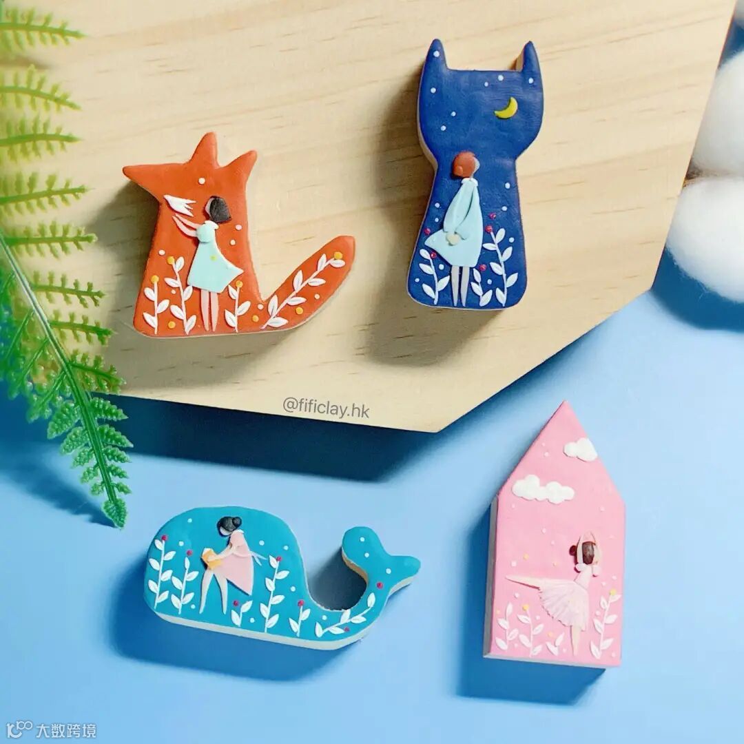 記錄日常生活的點滴靈感和美好瞬間,製成插畫及軟陶手工飾品,有耳環耳夾、項鏈手鏈、髮夾髮飾、襟章徽章等配件飾品。追隨蘑菇和花花的可愛小貓,仙人掌小甲蟲,小灰象和玩球的柴犬,與愛幻想的你,一同行走在白日夢的森林裡……