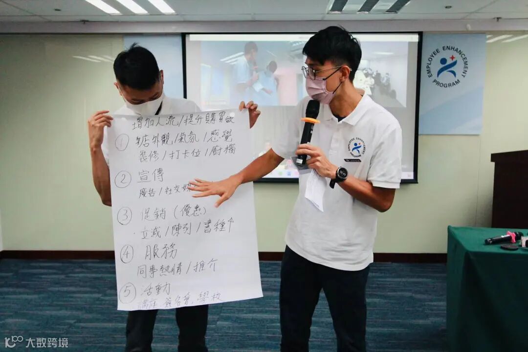 最後環節是店長經驗分享。店長們分成5組,每組抽一條問題,例如:如何將書店與社區更好地連繫、建立社群,增加讀者的聯繫及參與?又或者,作爲店長最想與新入行的同事分享三個關鍵詞。每組店長們討論並構思3個方案及點子。在店長們思維碰撞下,不少新思路被打開,大家熱情地分享討論成果。
