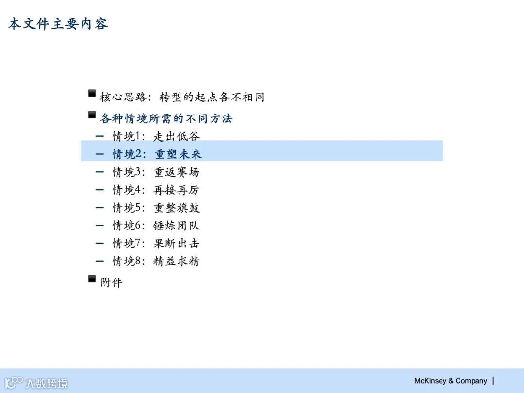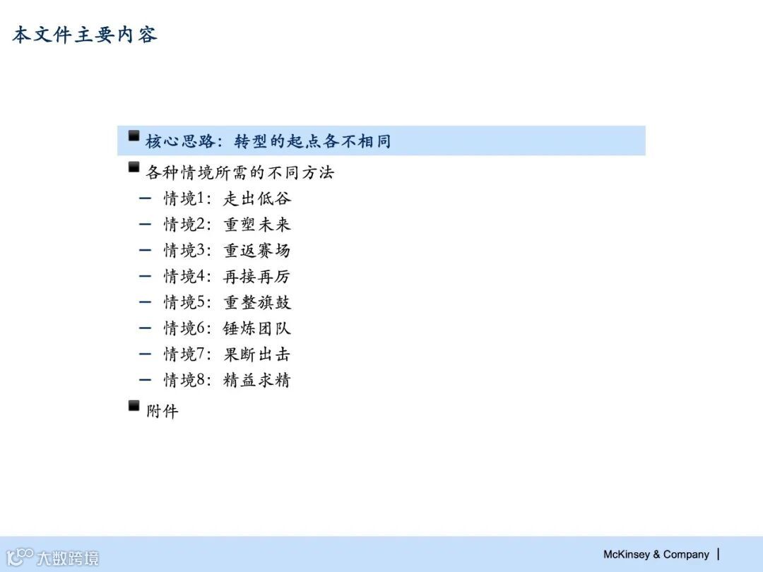 P87页PPT《麦肯锡:组织转型构建的8大情境》战略管理.pptx 领导者管理笔记