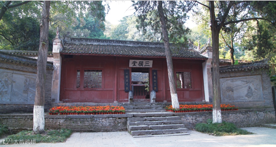 圖 | 三顧堂,位於三顧堂位於武侯祠南側、諸葛草廬前,乃明代根據宋代基礎所改建而成。目前所見的三顧堂保持了清光緒年的式樣,前廳三間,後堂五間,是硬山起脊建築。正門前的對聯「兩表酬三顧,一對足千秋」,「兩表」指的就是諸葛亮的前、後出師表,「一對」則是指著名的《隆中對》。