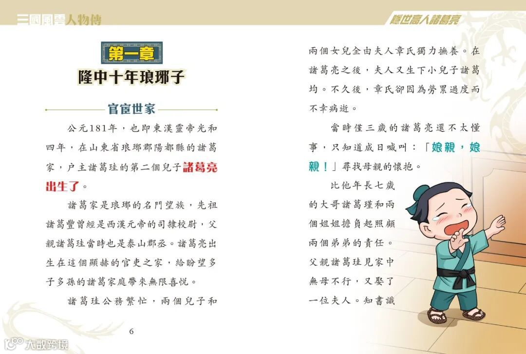 「三國時代」被稱為中國歷史上的「英雄時代」,歷史故事性強,一向深受小朋友歡迎。由香港新雅文化最新推出的《三國風雲人物傳》系列就是專為初小或以上學生而設的橋樑書。