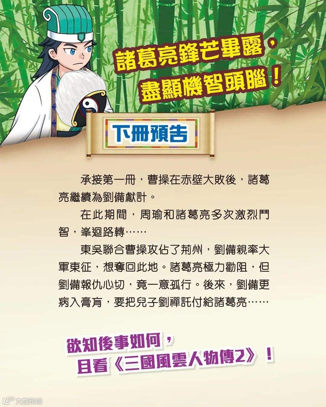 到底這位三國風雲人物在少年時經歷了什麼?初出茅廬的他怎樣發揮其才能與膽識?就要你來打開此書一看究竟!