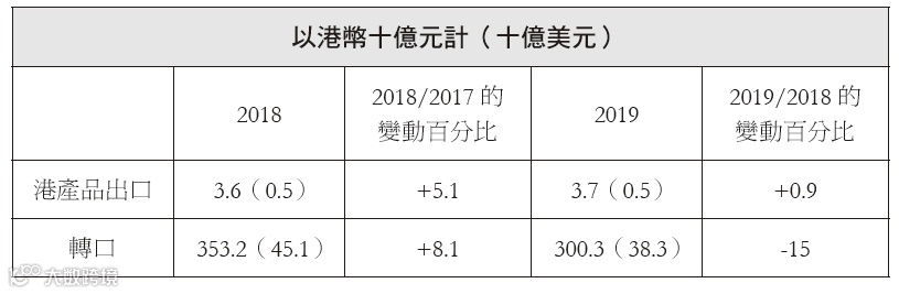 毋庸置疑的是,從間接層面香港經濟貿易的整體發展情況還是受到了中美貿易戰的影響。由於香港享有獨立於中國內地的關稅區地位,這使得很多中國外貿商品可以從香港轉口,也使得長期以來香港承擔了美國與中國內地之間商品貿易的重要轉口港的重要責任。