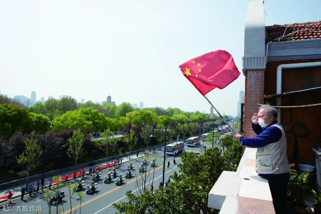 王老伯在陽台上向北京醫院援鄂國家醫療隊的車隊致以軍禮 | 圖:劉宇