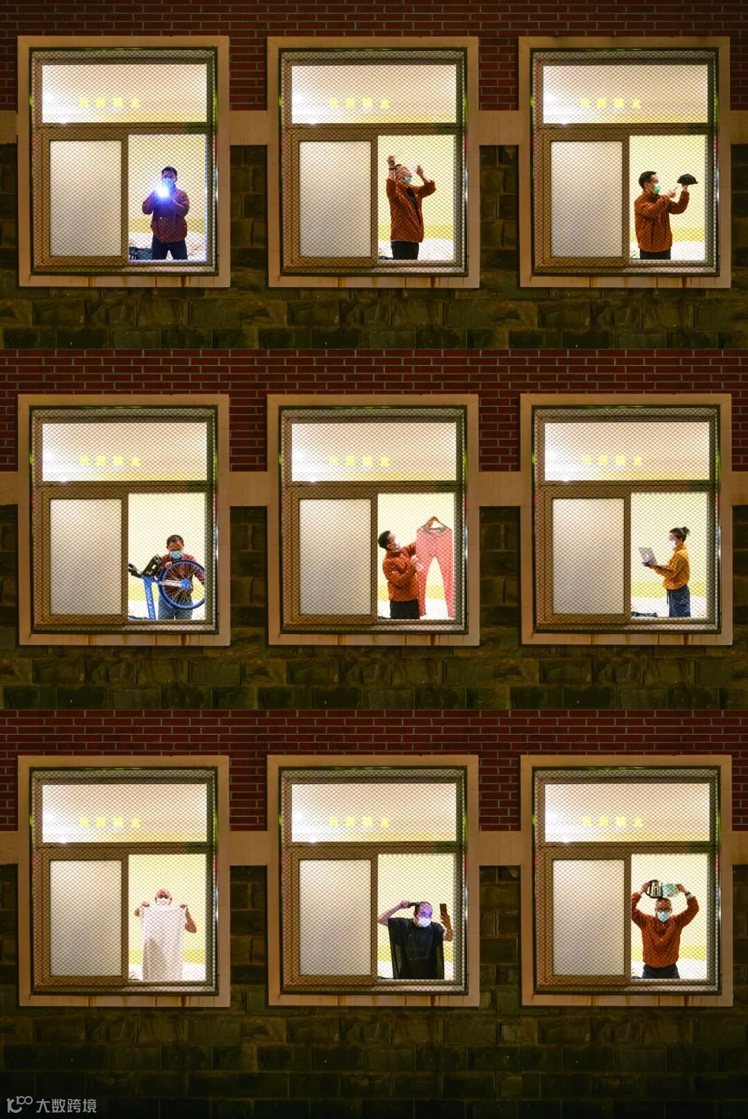 參與「為天使造像」項目的部分攝影師,在記者駐地水神客舍再現工作和生活情景。上排從左至右:季春紅、陳建、柴選。中排從左至右:徐迅、李舸、曹旭。下排從左至右:馬耕平、陳黎明、段崴。 | 圖:劉宇、製作:陳黎明