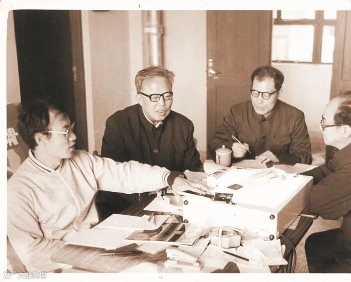 陳萬雄博士(左一)與故宮專家商議《紫禁城宮殿》定稿