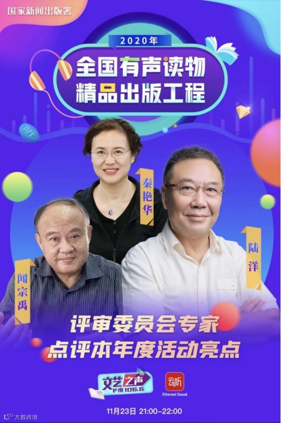 11月23-27日,國家新聞出版署聯合中央廣播電視總台音頻客戶端雲聽共同打造的「品味書香·2020全國有聲讀物出版工程訪談」特別節目以直播訪談方式播出,共邀請了15位評委會專家點評本年度的活動亮點。