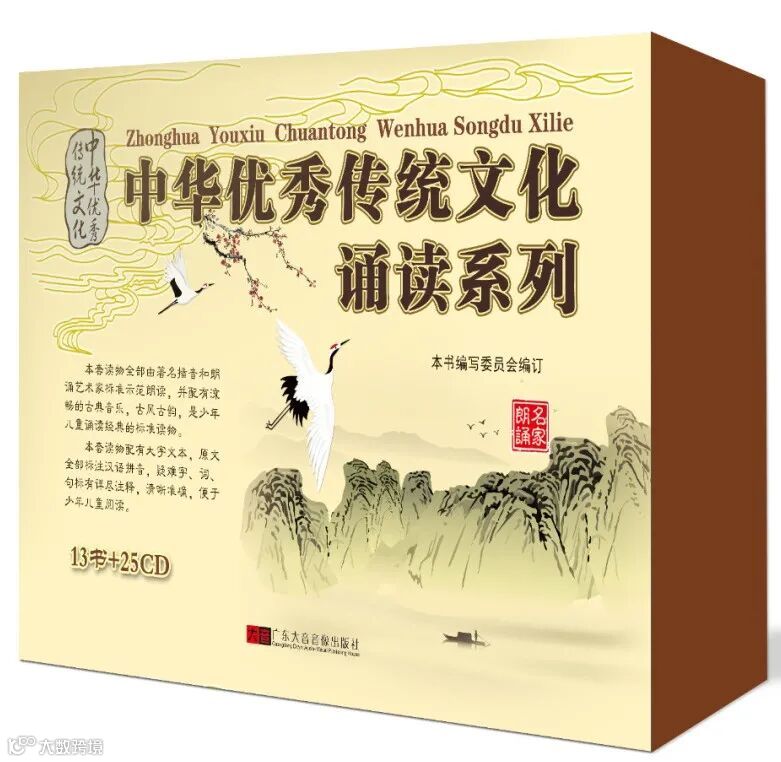 這套《中華優秀傳統文化誦讀系列》套裝一共包含13冊產品,包含了著名播音和朗誦藝術家標準的示範性朗讀,並配有流暢的古典音樂,古風古韻,且配有大字文本,原文全部標註漢語拼音,疑難字、詞、句標有詳盡注釋,清晰準確。