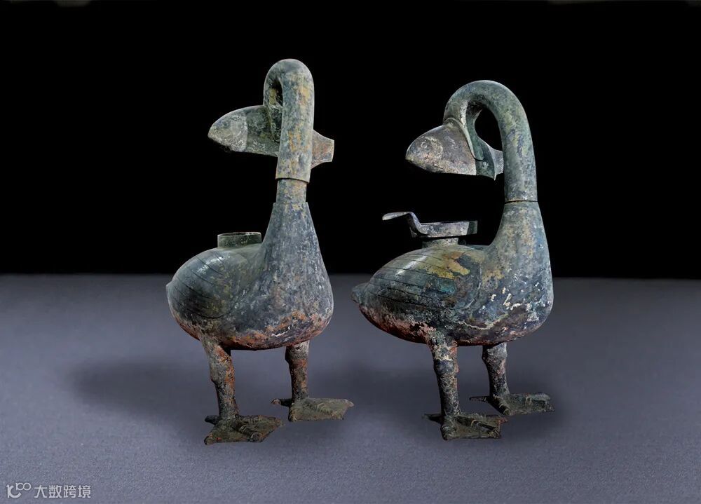 雁魚燈,非常奇特罕見的燈具。以大雁叼著一條魚為造型,與水鄉鄱陽湖的自然生態極其吻合,足見設計鑄造者對生活的細緻體察和熱愛。不僅美觀,還科學實用,燃燒的煙能夠通過魚腹和煙道進入大雁的肚子裏,經過肚子裏面的淨化,達到保持室內環境清潔的目的。