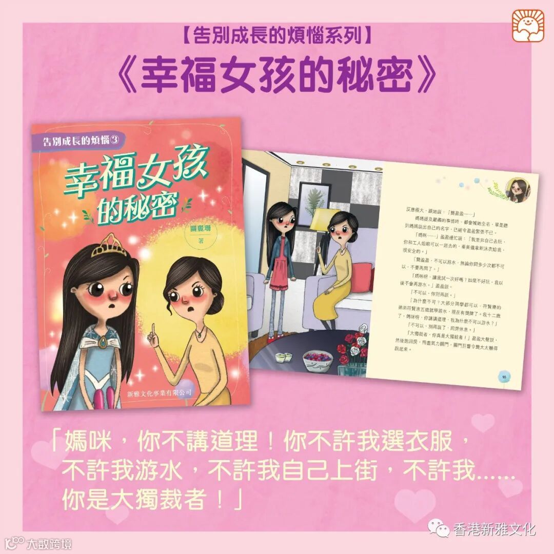 她想去學游泳,媽媽說不可以;她想自己選購衣服,媽媽又說不可以;她想跟同學一樣自己去逛街,媽媽還是說不可以!盈盈忍不住跟媽媽吵起來了,還決定偷偷跟同學去游泳,怎知……為什麼盈盈的媽媽常常不準她這樣,不準她那樣的呢?幸福女孩心裏的各種秘密,可以向誰傾訴呢?