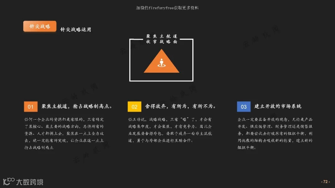 - 案例:华为将运营商视为客户,而非渠道;客户需求需通过“谁是我们的客户”的精准定位(如战略匹配度高、高附加值)。