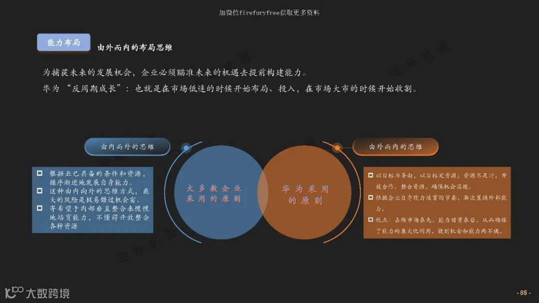 - 市场机制:机会牵引资源(如华为反周期成长);
