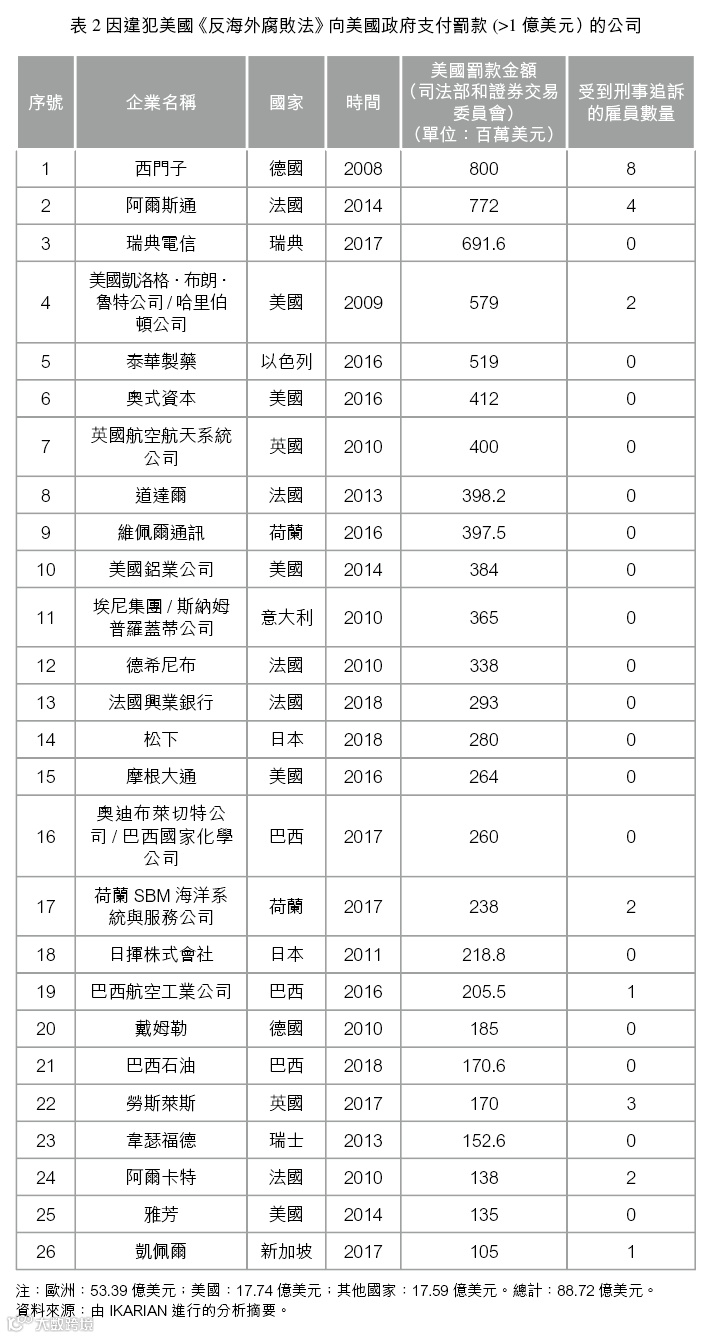 圖| 因違反美國《反海外腐敗法》向美國政府支付罰款的公司