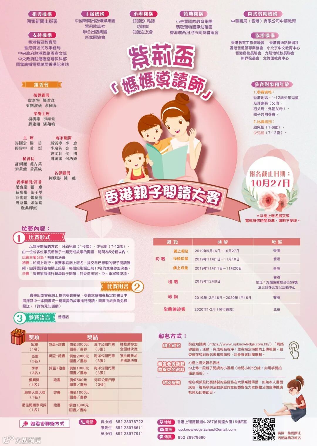 本次比賽章程、細則、聲明及參賽詳情,請點擊下方「閱讀原文」前往知識網「媽媽導讀師」活動專頁或掃描上方二維碼查閱。