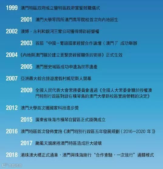 二十年彈指一揮間,在人類歷史長河中只是短短一瞬,但是對於澳門而言,這二十年卻是重大歷史轉型的二十年,從昔日葡萄牙佔領管制下的一個特殊區域轉變為中國依照憲法規定而設立的一個特別行政區,身份和角色的轉換為澳門社會經濟發展開啟了嶄新的局面,也讓澳門特區成為實踐「一國兩制」基本模式和寶貴經驗的試驗田和示範地,澳門也從回歸前一個經濟發展低迷蕭條、黑社會勢力猖獗、社會治安混亂的「博彩之都」發展成為今日社會和諧、政治穩定、文化多元、經濟繁榮的國際知名旅遊休閒文化名城。