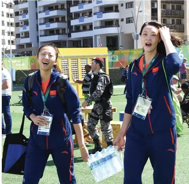 里約當地時間2016年8月13日,中國女排隊員從里約奧運會運動員村出發,前往訓練場訓練,隊員們一臉輕鬆,充滿信心。圖為丁霞(左)與惠若琪。