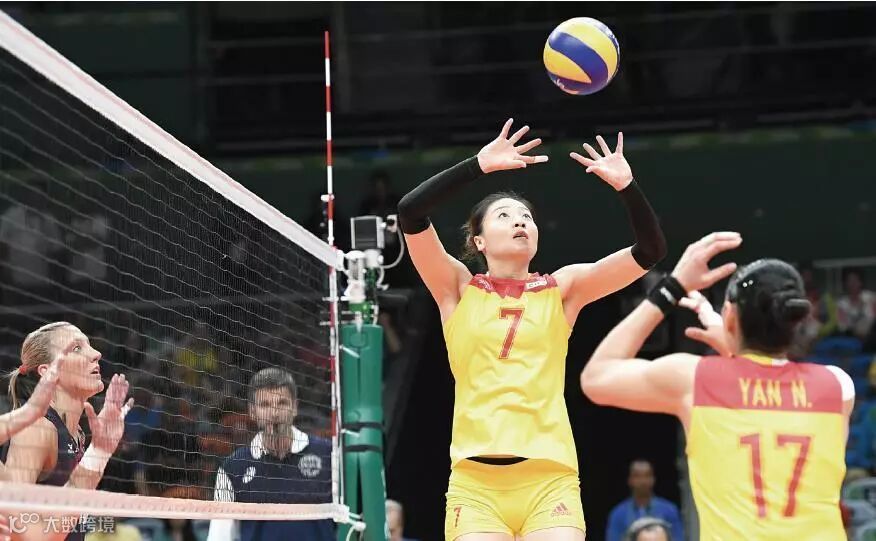 里約當地時間2016年8月14日,里約奧運會小組賽B組的一場比賽中,中國隊與美國隊展開激戰,以1比3負於美國隊。圖為魏秋月(右二)傳球。