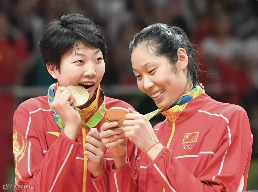 2016年里約奧運會中國女排奪冠後,女排「三劍客」合影。左起依次為:魏秋月、徐雲麗、惠若琪。