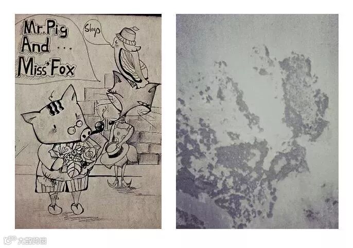 pencil從來不缺靈感,目所能及的地方皆成為了畫。牆上的痕跡也能變成畫: