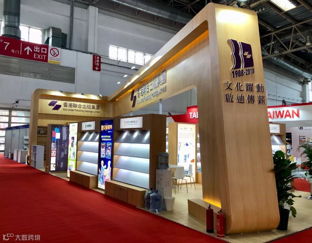 集團的展位在國際館內,於眾多展台中顯得格外搶眼。此次展位設計以「一帶一路」為主題,一條飛跨而起的橫樑貫穿整個展位,橫樑下方的空間,陳列三聯、中華、商務、萬里、新雅與中和六家出版社的新書和經典書目。展位以淡色木紋圖案裝飾,傳遞出清新文雅的意蘊。
