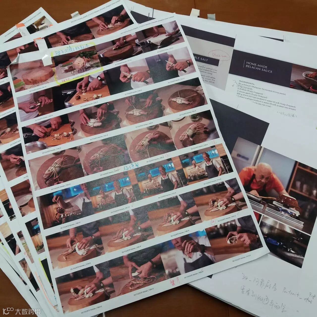 「鼎爺日程排得滿滿的,拍攝期一再延至5月9日,距離書展只有兩個月,時間非常緊迫,不容有失。」因此,連續五天的拍攝期最後落實在公司附近的煤氣烹飪中心,既合乎明火煮食的要求,又方便接應。「我們可說是嚴陣以待,鼎爺平時做菜對鑊、煲等的要求很簡單,唯對刀和砧板有嚴格要求,刀由鼎爺自備,至於松木砧板實在太重,鼎爺不便携帶,所以我們決定由我方準備。加上其他廚具如:瓦罉、鑊、竹鑊鏟、蒸籠等等。」朱素貞笑言,首次與鼎爺合作,不敢鬆懈,「我們由公司搬了15箱廚房用品到現場,比平時多出近四倍,以備不時之需;同時,現場人手準備充足,包括清潔的同事,所以公司內部發出公告,那幾天不會有清潔服務,需要各同事自律。」