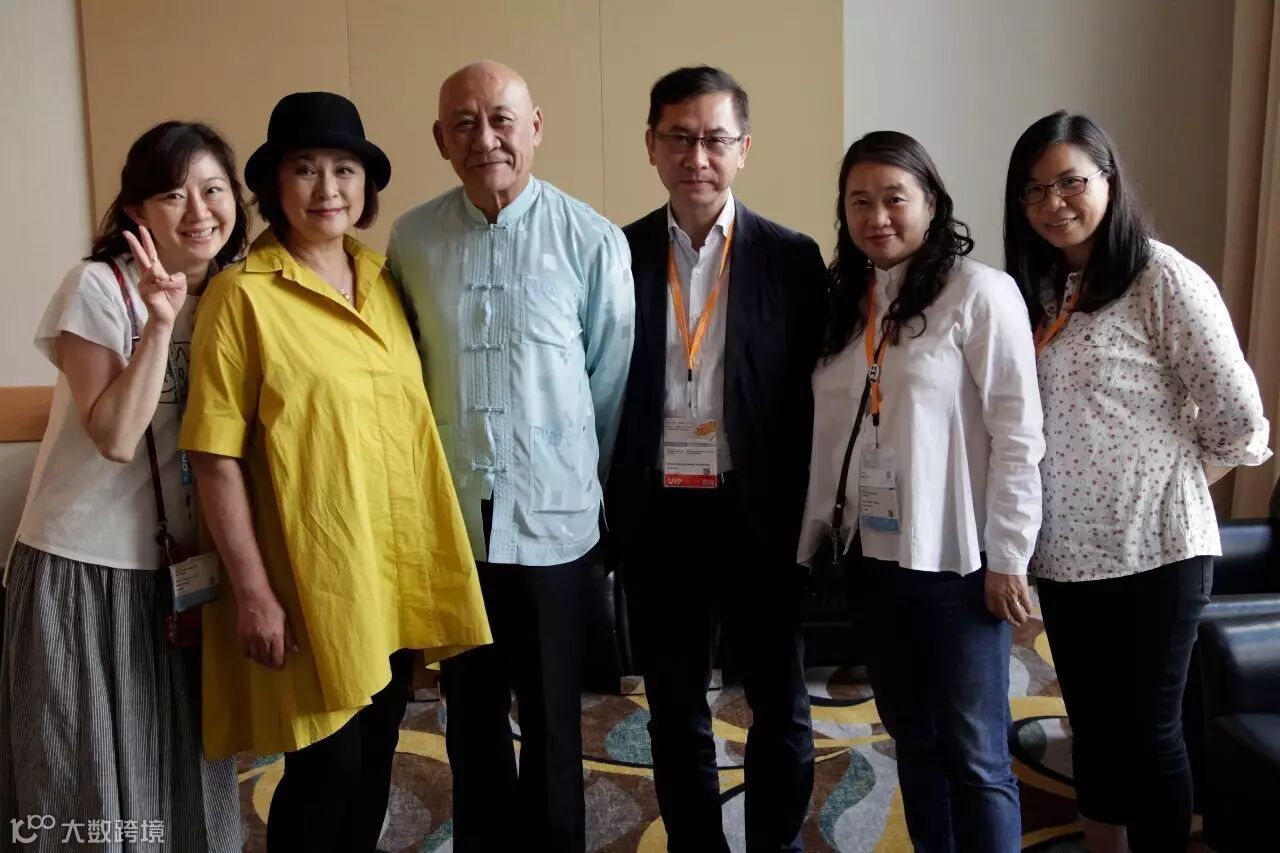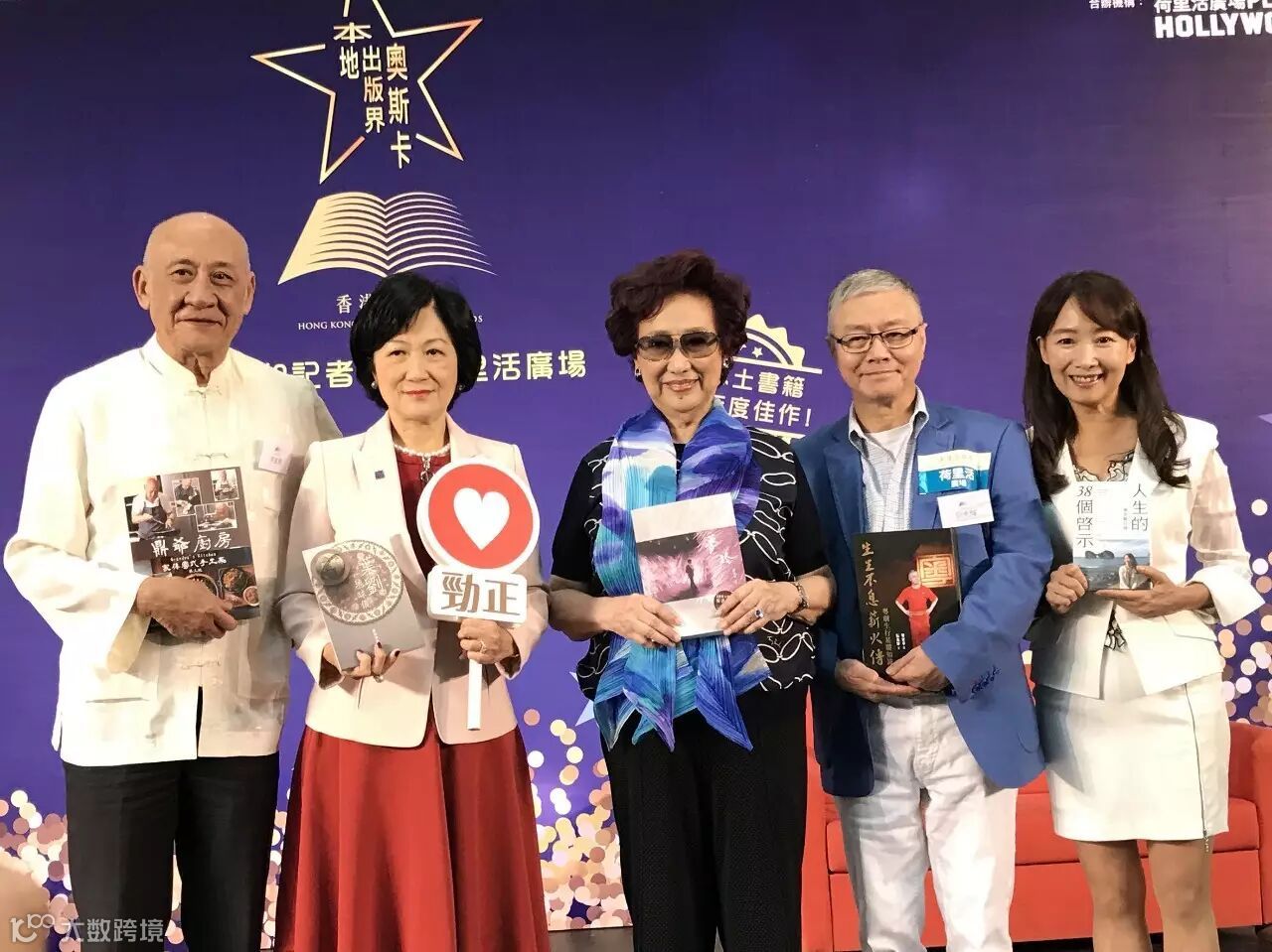 Gigi姐(左二)和鼎爺(左三)與聯合出版集團副總裁李家駒(右三)和萬里朱素貞(右二)等同事在香港書展講座後合照