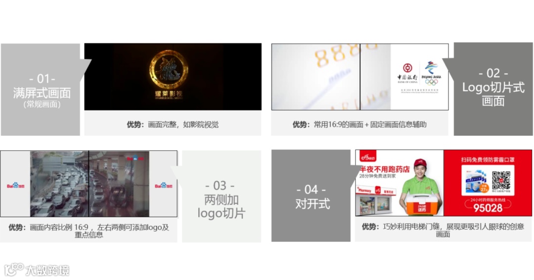 在观看距离相对固定的电梯空间,“梯影大屏”的超大屏幕能产生更宽的视角宽度,让受众感受到独一无二的冲击力和视觉影响,对广告内容产生强势记忆。