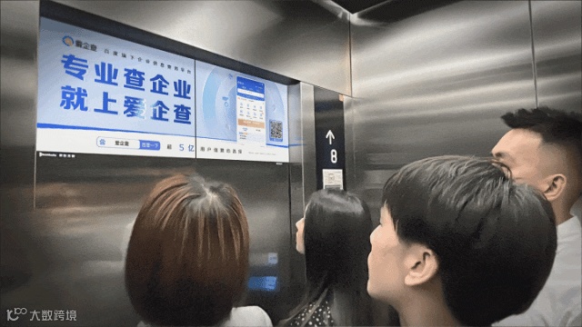 在商务人群、都市上下班必经的的写字楼电梯场景,爱企查通过梯影大屏向用户精准传递品牌价值,精准直击需求人群,让每一位通勤的职场人士快速了解品牌。