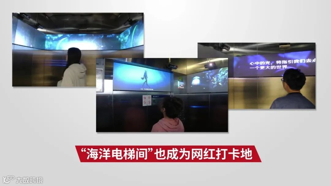 多人次观看,“海洋电梯间”也成为上班途中的网红打卡地。