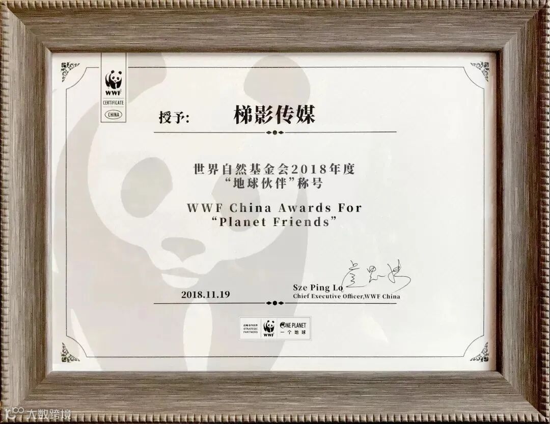 梯影一直以来的努力被看到,也被认可。此前,我们被世界自然基金会(WWF)授予了“地球伙伴”称号。梯影依靠高覆盖人群的传播优势,不断致力于唤醒公众环保意识,加强自然保护的公益宣传。