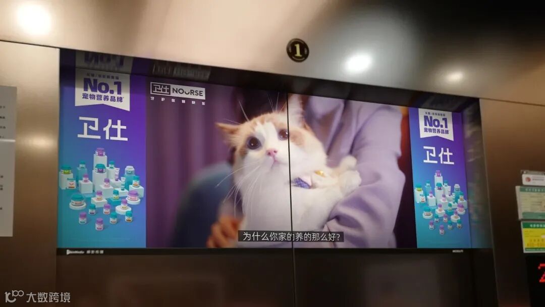 在产品日趋同质化的市场中,宠物用品们又该如何突出重围呢?除了另辟蹊径挖掘产品优势以外,还需要宣传渠道双管齐下,共同助力宠食市场百花齐放。近期,一则卫仕广告出现在梯影媒体上,一句“猫狗身体好,卫仕少不了”让人印象深刻。
