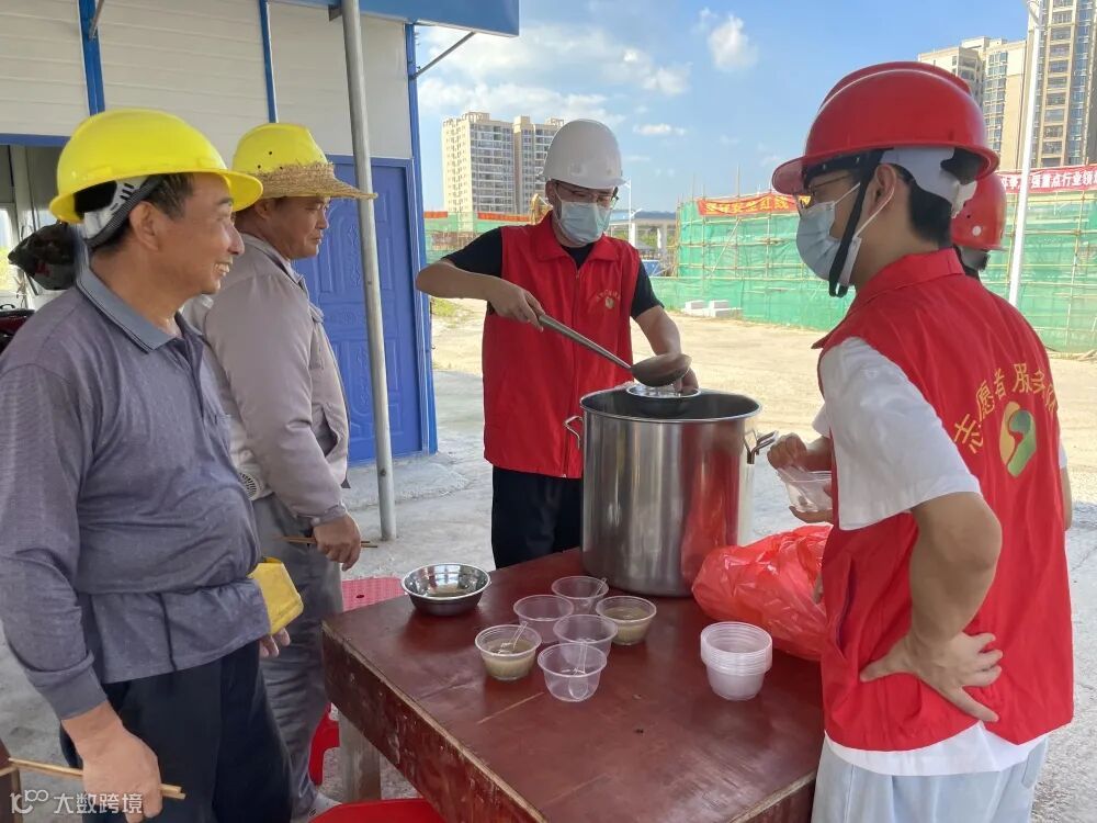 活动现场,师傅小陈一边吃着绿豆沙,一边开心地说:“这么热的天气,在工地上能吃上冰凉冰凉的绿豆沙,真的很爽”。 炎炎夏日送清凉,丝丝关爱入心田,一份清凉,一份关怀,一份爱心,开展送清凉活动不仅送去了梅河区域中心志愿者服务队的清凉和关怀,还极大鼓舞了项目一线工人们的士气,为东源厂二期项目的工程建设提供了安全生产保障。