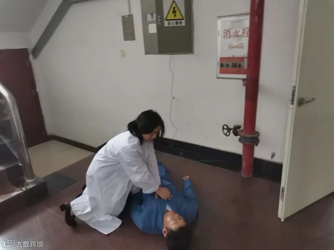 事故模拟一名电工人员在综合楼一楼楼梯前面作业时不慎触电,现场人员发现后立即将事故报告给本次演练总指挥罗国标,罗国标收到呼救电话后立即启动应急预案,派遣应急救援人员、警戒联络人员、医疗救援人员、后勤保障人员等火速赶往事故现场。