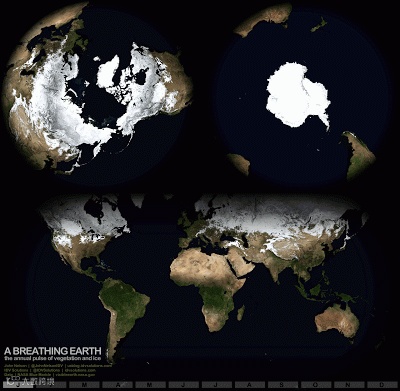 4. 地球上一年内的冰川、植被变化,