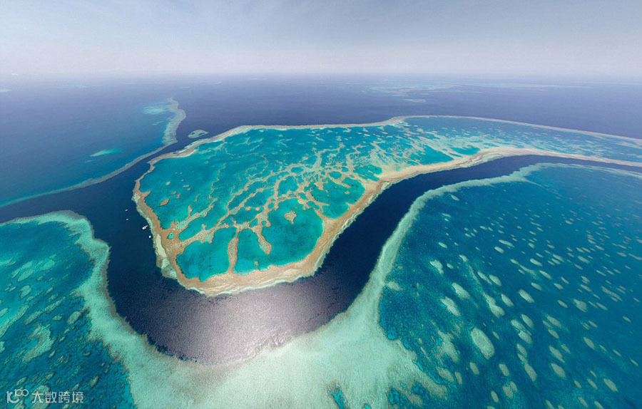 澳大利亚大堡礁的奇妙色彩在全景图下更添奇幻。