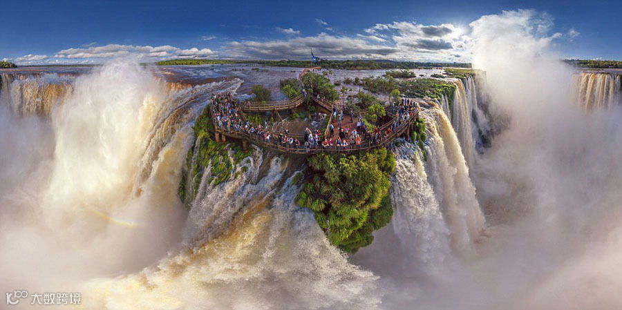 赞比亚的维多利亚瀑布犹如盛在金碗中的琼浆,而瀑布上架起的彩虹也被Airpano及时捕捉。
