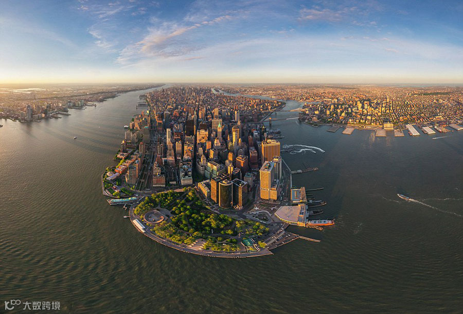 从海面拍摄的纽约曼哈顿则更像是个繁荣的港口小镇。