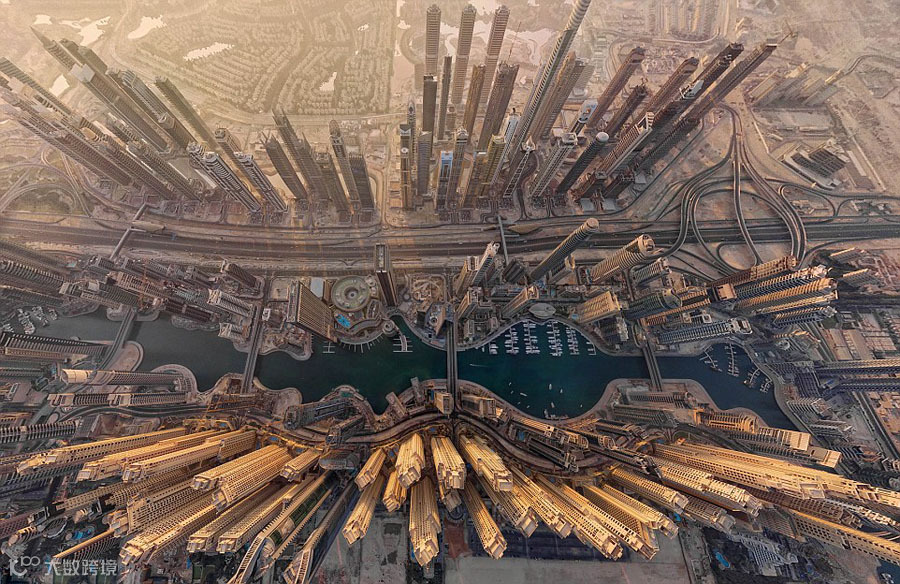 迪拜从来都是创造惊叹的地方,而这张空中全景更是将一座座摩天大楼拍出了新高度。