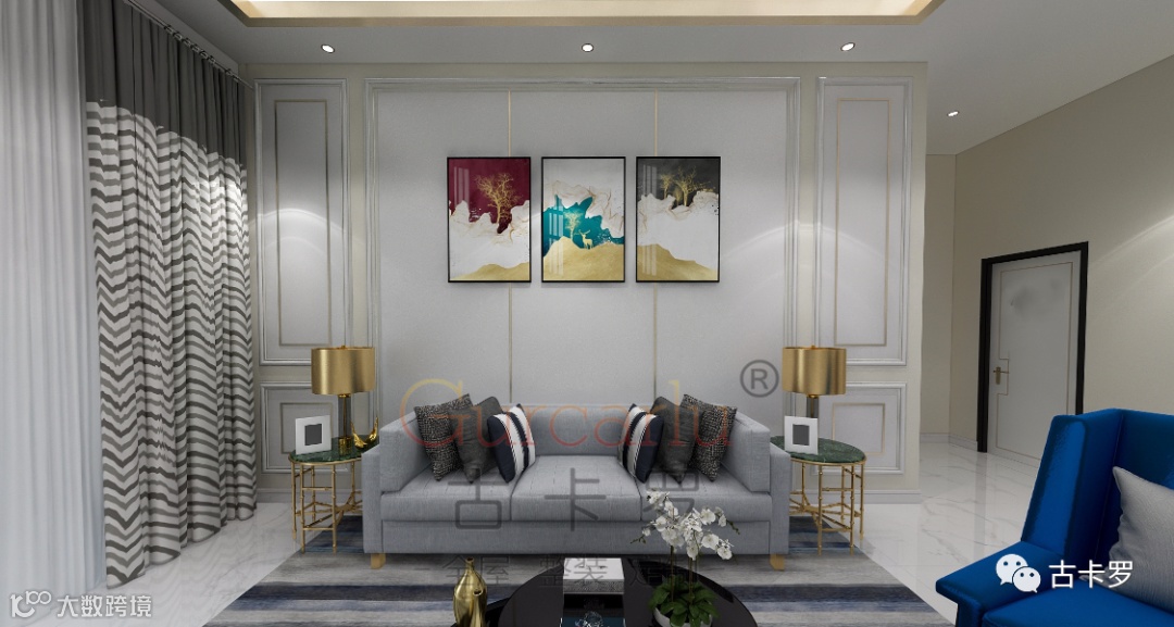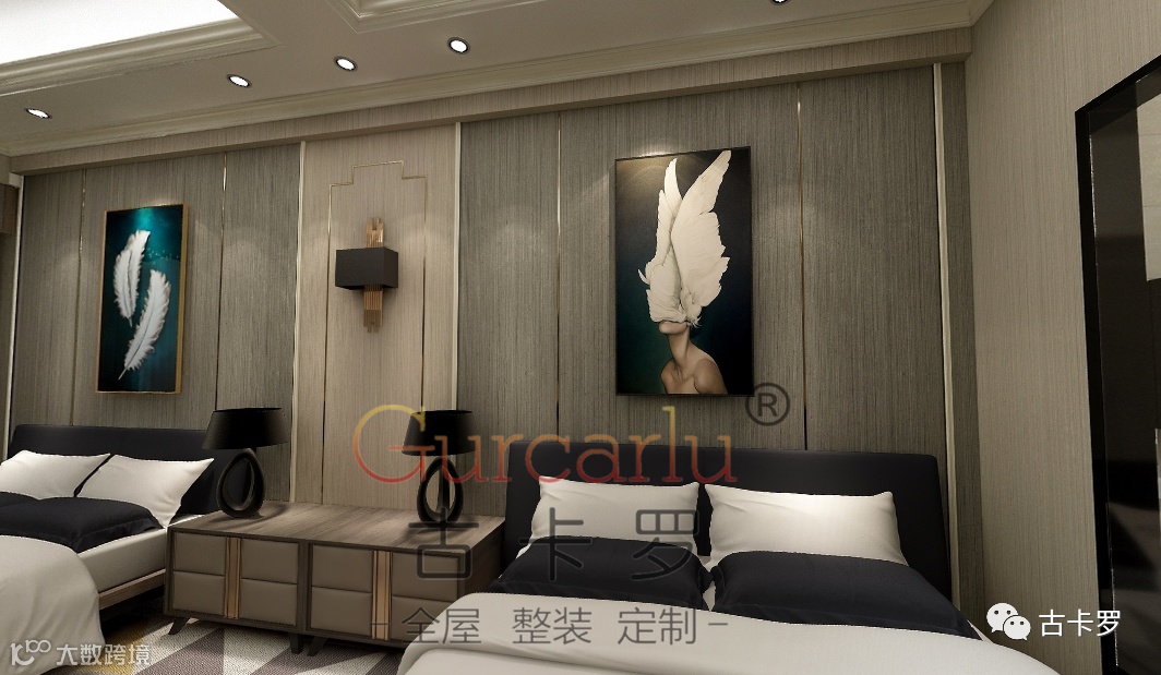 古卡罗全屋整装拥有研发设计中心,各种款式的线条和纯皮革、纯布艺快装墙板的搭配,通过点、线、面形式设计,实现多样的全屋整装风格,深获广大消费者青睐。