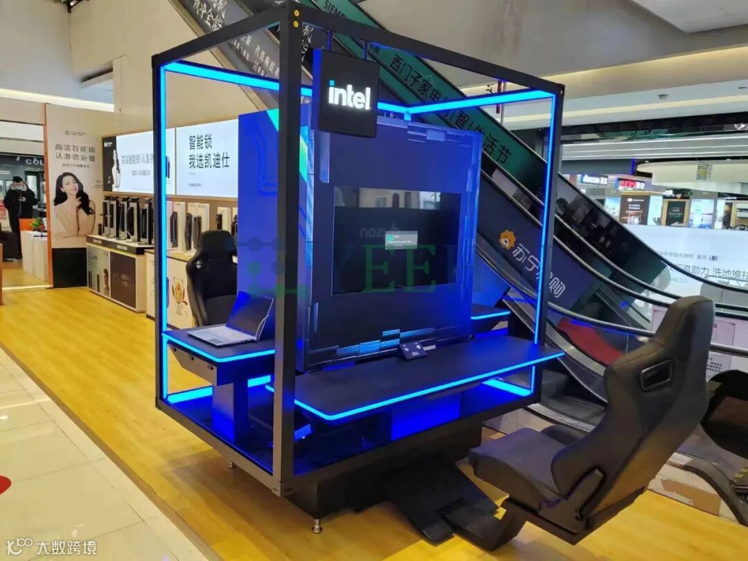 苏宁易购—英特尔Intel电脑展示柜由上海熠卉生产制作完成。把发光板应用到展示柜上,相较于普通的展示柜,整体带来了科技动感元素,更有艺术氛围,视觉上更有冲击力!LED发光板具有发光均匀柔和、节能环保、使用寿命长和超薄等优点。运输方式和安装操作简单便捷。